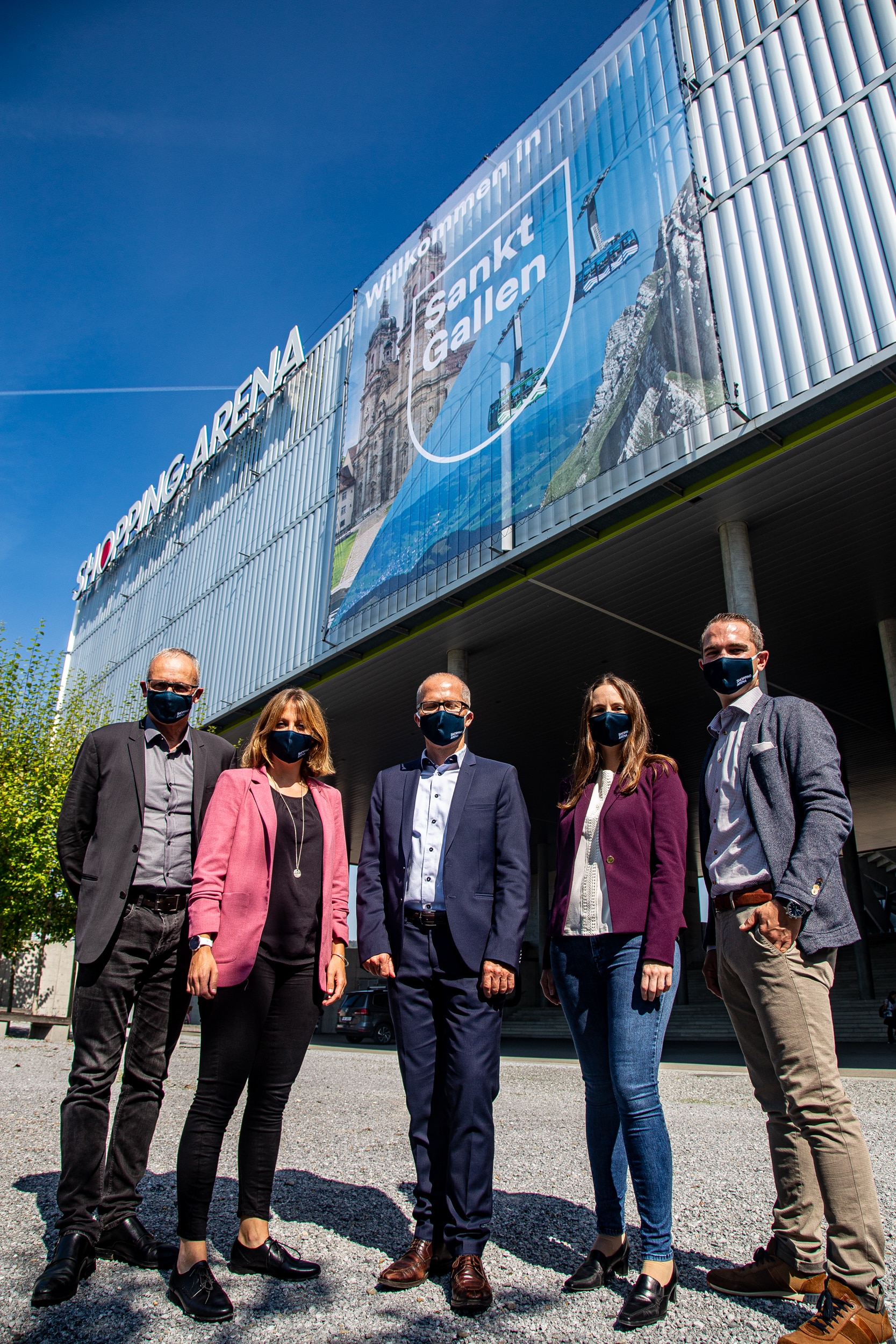 Die Shopping Arena setzt sich für einen attraktiven Einkaufsstandort St.Gallen ein, und will gemeinsam mit den Akteuren der Innenstadt sowie St.Gallen-Bodensee Tourismus die Wahrnehmung für die Erlebnisregion steigern. Mit diesem Bezug wurde ein übergrosses «Willkommen in Sankt Gallen» Plakat an der Aussenfassade der Shopping Arena platziert.